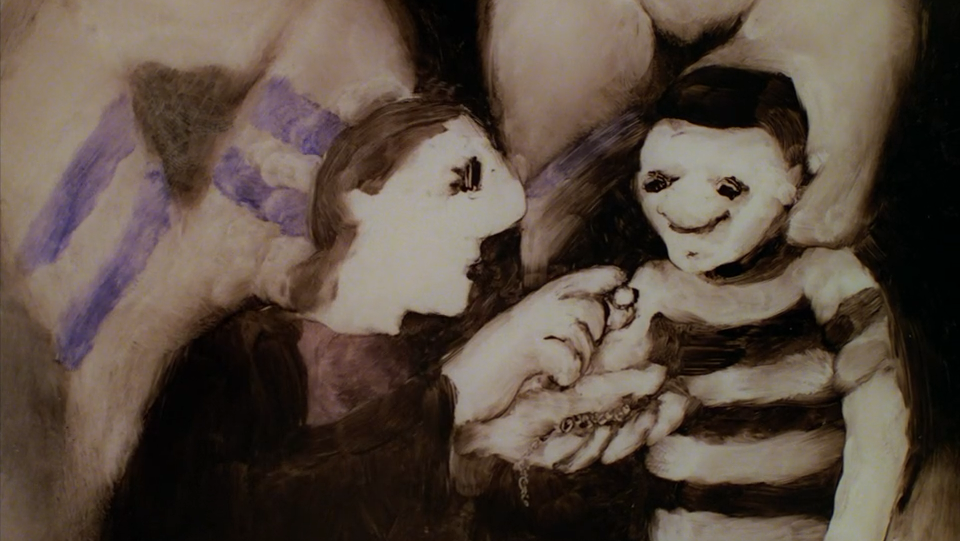 A death in the family experienced through the eyes of a child, painted on glass to evoke selective…
